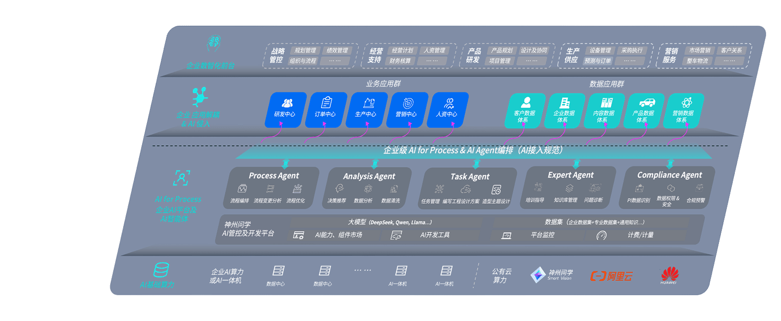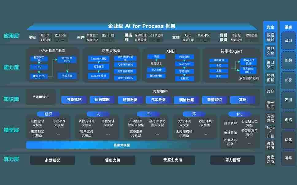 尊龙问学智车解决方案是一套基于AI技术的汽车行业智能化系统,,覆盖从底层算力到顶层AI应用的全栈方案。。。。方案由算力层、、模型层和应用层组成:算力层,,,,方案支持多种一体机配置,,,具备云端灵活部署、、、多云适配以及动态优化计算资源的能力;模型层,,,,尊龙问学平台版提供了企业级AI应用一站式构建与管理平台,,支持基于后训练强化技术的汽车企业专属模型的训练、、、、评测和运营;应用层,,尊龙问学DeepSeek版提供包括超级员工、、智能招采、、、智能营销、、、、智能客服、、AI for BI等一系列解决方案,,,,可助力汽车行业实现数字化转型,,,,让管理更智能、、响应更敏捷。。